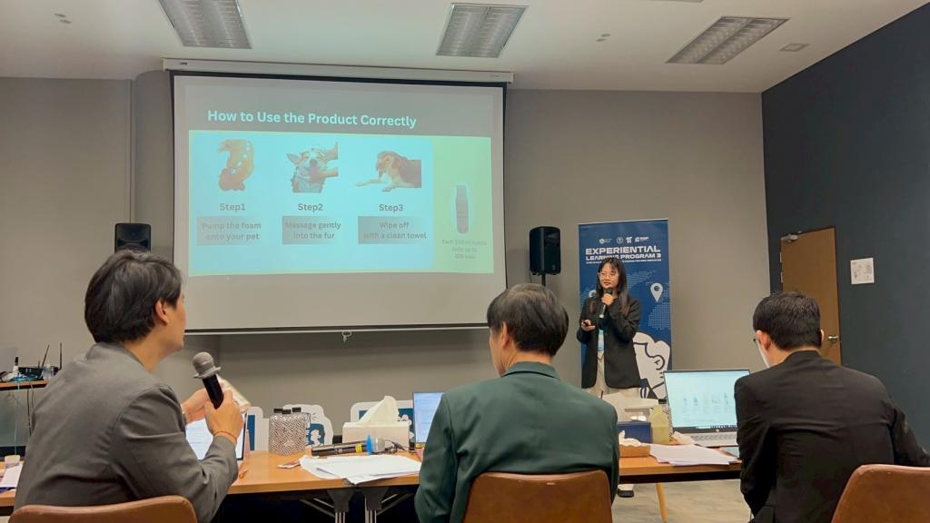 The ELP aims to develop students and researchers into globally competent entrepreneurs and innovators. As part of the program, Miss Saisavat presented a marketing plan for her innovative product, "CleansyMousse Pet Dry Shampoo"—a waterless bathing product for pets. This research was supervised by Associate Professor Dr. Sureewan Duangjit, from the Faculty of Pharmaceutical Sciences, while Assistant Professor Dr. Kamonporn Nakornchaiyakun and Mr. Kanatkit Thongpool served as her business plan advisors.