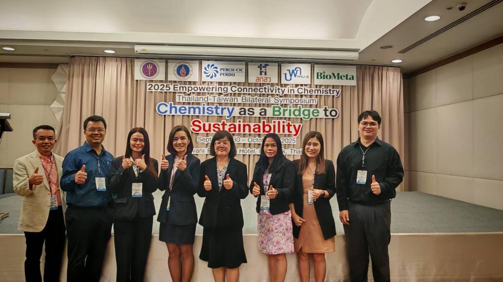 Ubon Ratchathani University (UBU), led by Professor Dr. Siriporn Jungsuttiwong, Dean of the Faculty of Science, participated in the international conference “2025 Empowering Connectivity in Chemistry: Chemistry as a Bridge to Sustainability”, held from September 30 to October 3, 2025, at the Avani Ratchada Hotel, Bangkok. The event was organized by the Thailand Science Research and Innovation and presided over by Dr. Arunee Panpermsak, Assistant Permanent Secretary of the Ministry of Higher Education, Science, Research and Innovation (MHESI).