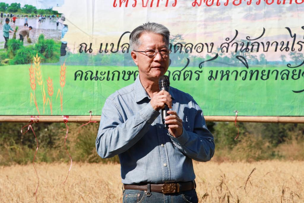 Dr. Narintorn stated that the “Mue Riew Ro Kiao Ruang” Project has been organized annually to cultivate students’ understanding of the value of agriculture and to provide experiential learning on every step of rice cultivation—from planting to harvesting. The project consists of two phases: Phase 1 covers soil preparation, seedling preparation, transplanting, and crop management, while Phase 2 focuses on harvesting and post-harvest activities.