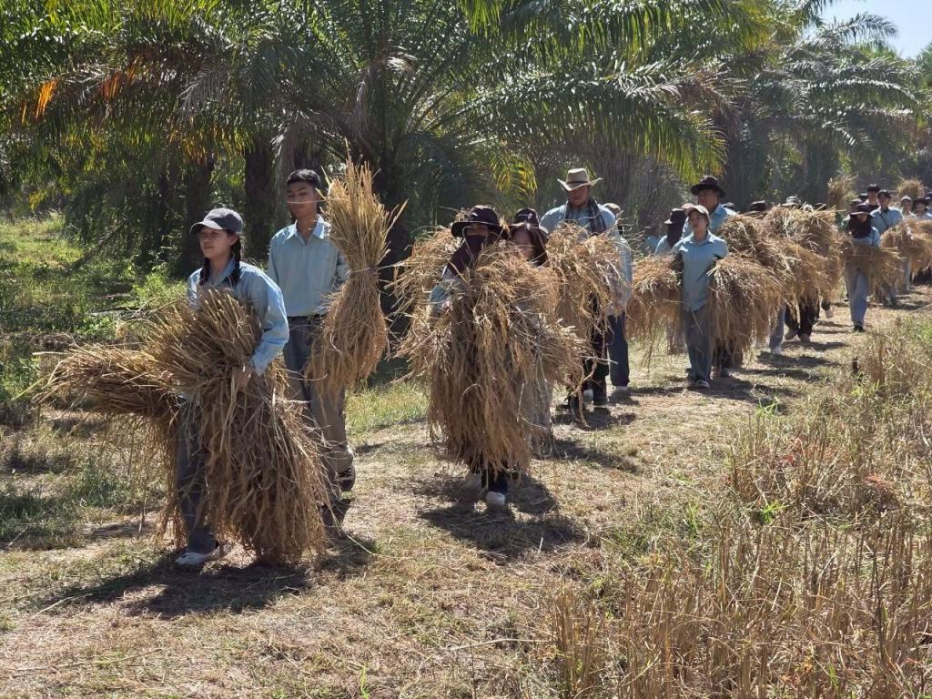 The rice was cultivated on four raiusing the Jasmine 105 variety (Hom Mali 105). The harvested yield will support student activities, volunteer outreach camps, celebration events for graduating students participating in the commencement ceremony for the 2024 academic year, and welcoming activities for new students in 2026. Part of the yield will also be donated to assist southern communities affected by recent flooding.