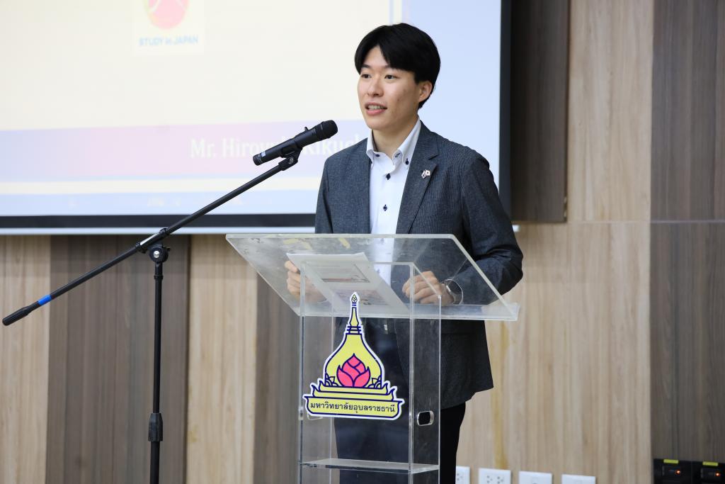 On this occasion, Associate Professor Dr. Chutinun Prasitpuriprecha, President of Ubon Ratchathani University, delivered the welcome address. The opening ceremony was presided over by Mr. TANIMURA Takamasa, First Secretary of the Embassy of Japan in Thailand. In addition, a keynote lecture was delivered by Mr. KIKUCHI Hiroyuki, Third Secretary of the Embassy of Japan in Thailand, who shared insights on educational opportunities and academic cooperation between Japan and Thailand.