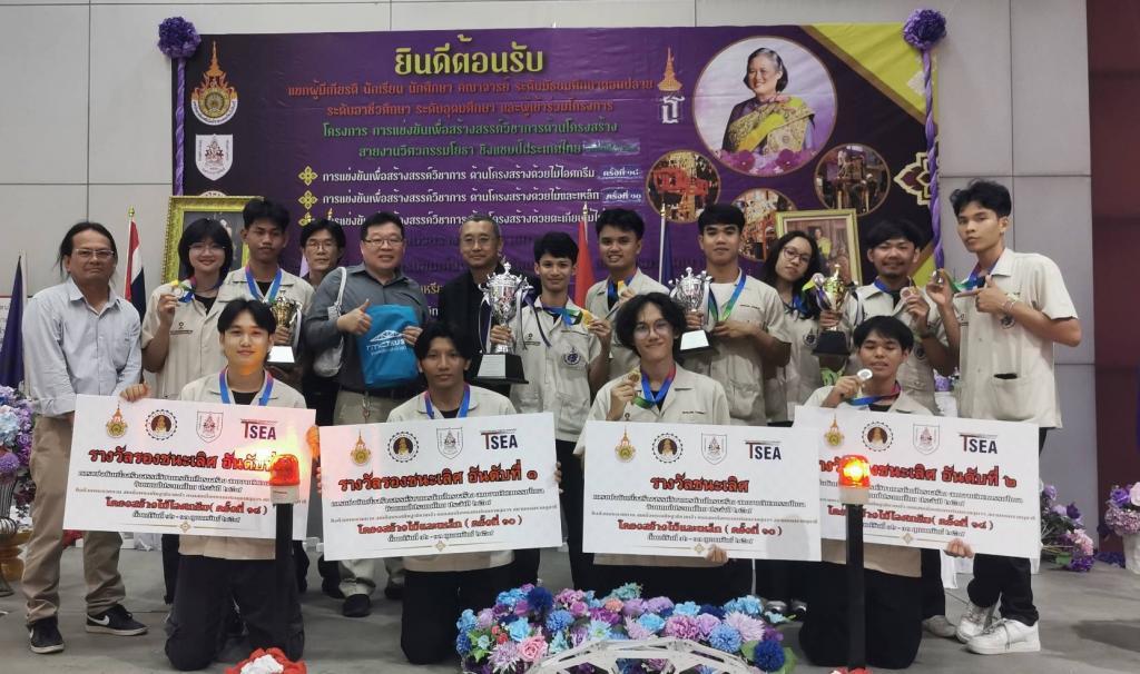 UBU sent four teams from the Department of Civil Engineering, and all four teams received awards. The students were advised and coached by Associate Professor Dr. Kittisak Khantiyawichai, Assistant Professor Dr. Wiwat Puatasananon, and Mr. Kriangkrai Boonsai, who provided training and support as part of the department’s ongoing commitment to student skill development.