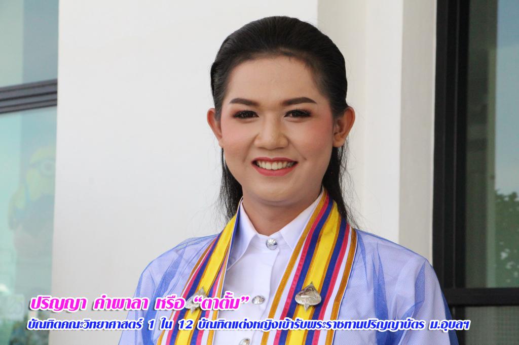 “ตาตั้ม” ปริญญา คำผาลา บอกว่า รู้สึกภาคภูมิใจที่เป็นบัณฑิตแห่ง มหาวิทยาลัยอุบลราชธานี เป็นสถาบันการศึกษาที่ทรงเกียรติ และยังเปิดโอกาสให้นักศึกษาทุกคนมีสิทธิอย่างเท่าเทียมกันในการแสดงออกถึงศักยภาพทุกด้าน ที่สำคัญที่ ม.อุบลฯ ยังให้สิทธิ์นักศึกษาที่เป็นเพศทางเลือกสามารถแต่งกายชุดนักศึกษาหญิงเข้าศึกษาได้โดยเท่าเทียมผู้หญิงจริงๆ และที่ยิ่งใหญ่และภาคภูมิใจที่สุดสำหรับตนเอง คือมหาวิทยาลัยอุบลราชธานีได้อนุญาตให้แต่งกายเครื่องแบบผู้หญิงเข้ารับพระราชทานปริญญาบัตรในครั้งนี้ การขออนุญาตแต่งหญิงเข้ารับพระราชทานปริญญาบัตร บัณฑิตต้องปฏิบัติตามขั้นตอนมีใบรับรองแพทย์มายืนยันว่าเป็น "เพศสภาพไม่ตรงกับเพศกำเนิด" ดำเนินเสนอขออนุญาตตามลำดับขั้นตอน ในปีนี้มีเพื่อนบัณฑิตร่วมรุ่นที่แต่งหญิงจากคณะต่างๆเข้ารับพระราชทานครั้งนี้จำนวน 12 คน เป็นความใฝ่ฝันตั้งแต่ตนเข้าศึกษาที่นี่ ขอบคุณมหาวิทยาลัยอุบลราชธานีที่เปิดโอกาสให้สาวประเพศสองคนนี้ ได้มีสิทธิเท่าเทียมกับทุกเพศ