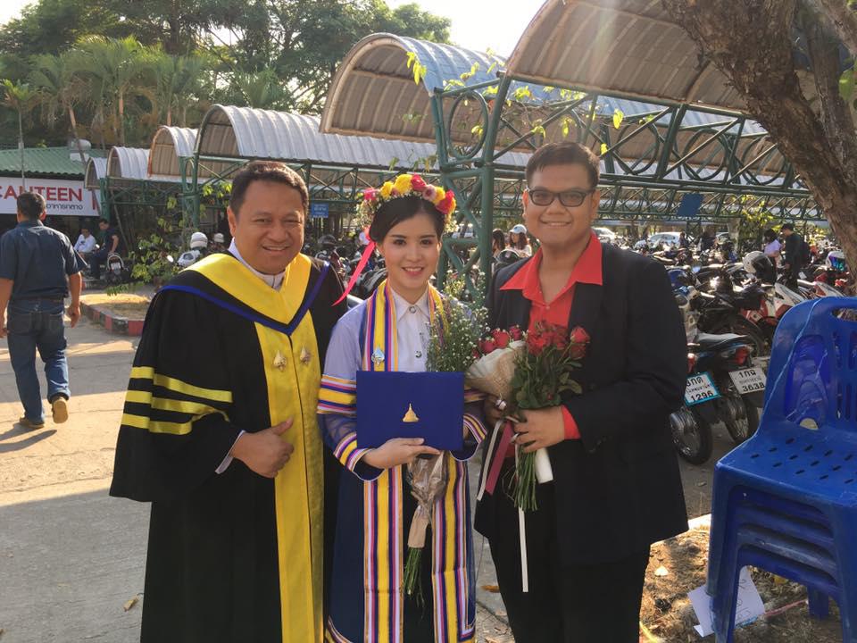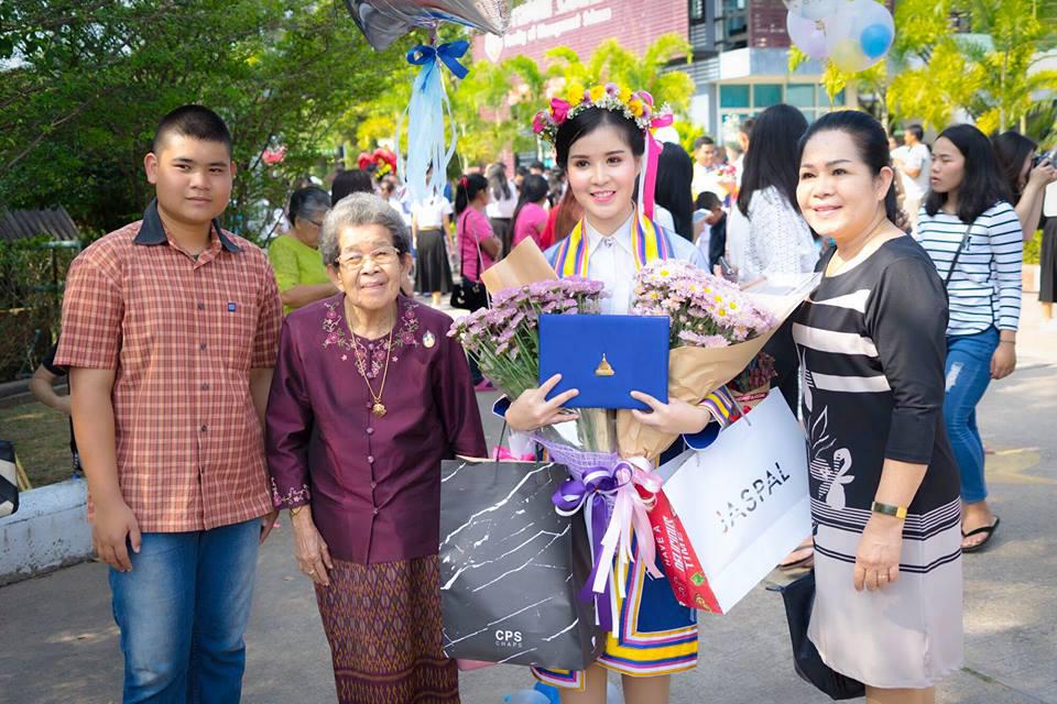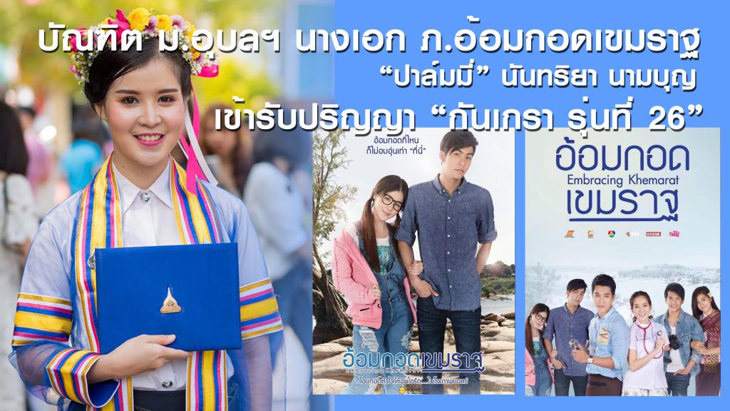 บรรยากาศกลิ่นไอของความสุข และชื่นมื่นในหัวใจของบัณฑิตและญาติ มิเคยจางหายไปจากใจสำหรับความยินดีกับความสำเร็จของบัณฑิต มหาวิทยาลัยอุบลราชธานี ที่เข้ารับพระราชทานปริญญาบัตร เมื่อวันที่ 13 ธันวาคม ที่ผ่านมา ซึ่งครอบครัวของ “ปาล์มมี่” นางสาวนันทริยา นามบุญ นางเอกภาพยนตร์ “อ้อมดอกเขมราฐ” บัณฑิตคณะบริหารศาสตร์ หนึ่งในบัณฑิตที่เข้ารับปริญญาในครั้งนี้ด้วย