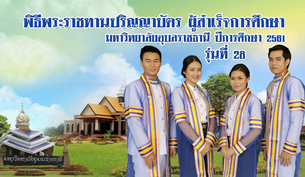 พระบาทสมเด็จพระเจ้าอยู่หัว ทรงพระกรุณาโปรดเกล้าฯ ให้สมเด็จพระกนิษฐาธิราชเจ้า กรมสมเด็จพระเทพรัตนราชสุดาฯ สยามบรมราชกุมารี เสด็จพระราชดำเนินแทนพระองค์ไปพระราชทานปริญญาบัตร แก่ผู้สำเร็จการศึกษาจากมหาวิทยาลัยอุบลราชธานี ประจำปีการศึกษา 2561 บัณฑิตรุ่นที่ 28 จำนวน 3,381 คน ในวันพุธที่ 11 ธันวาคม 2562 เวลา 08.45 น. ณ อาคารเฉลิมพระเกียรติ ๗ รอบพระชนมพรรษา มหาวิทยาลัยอุบลราชธานี